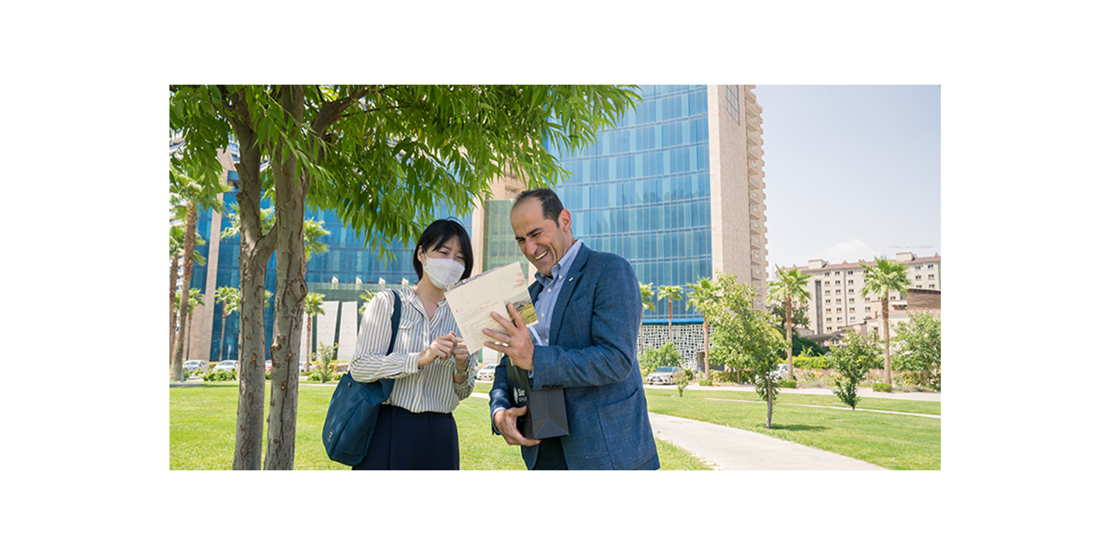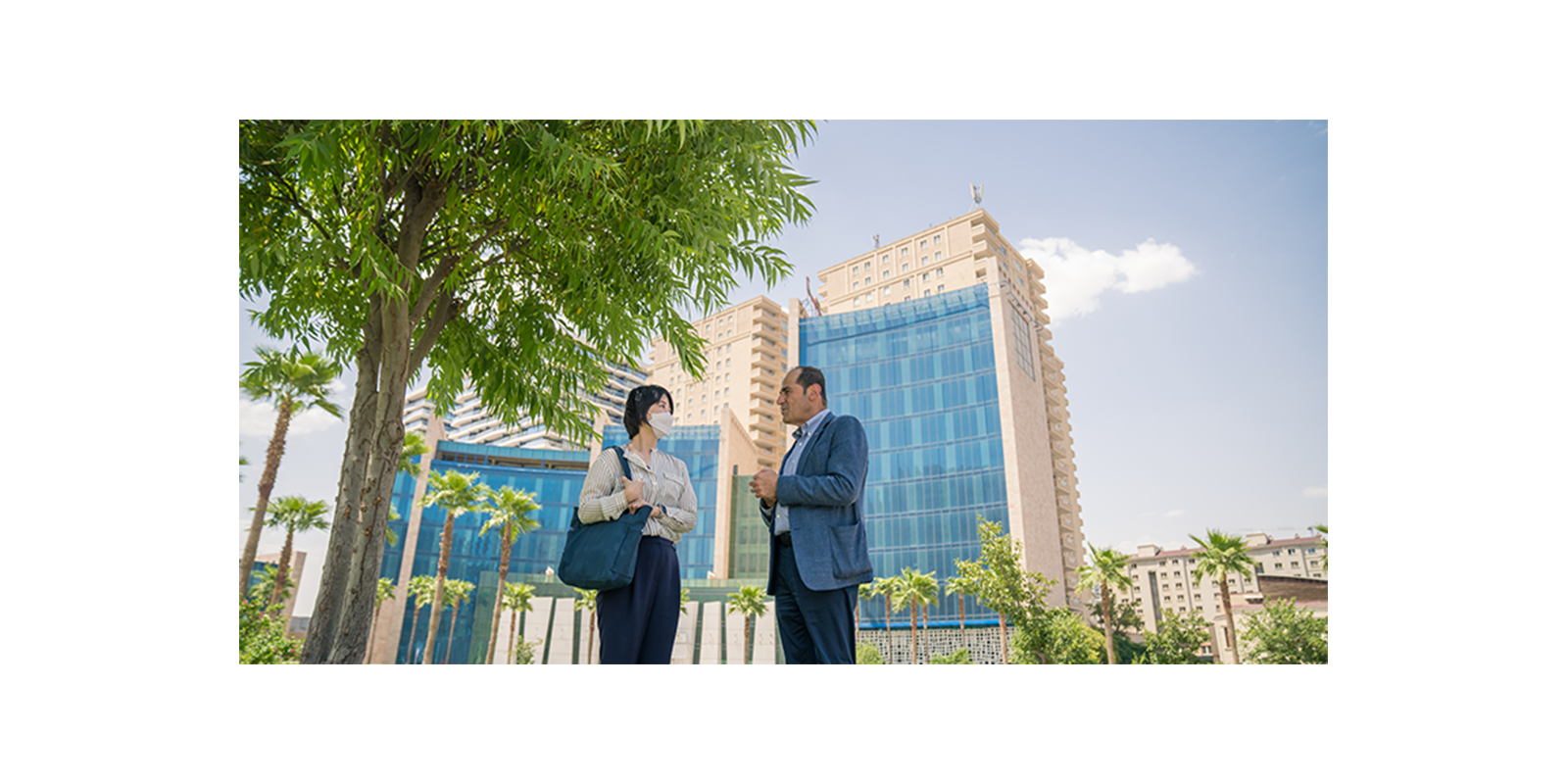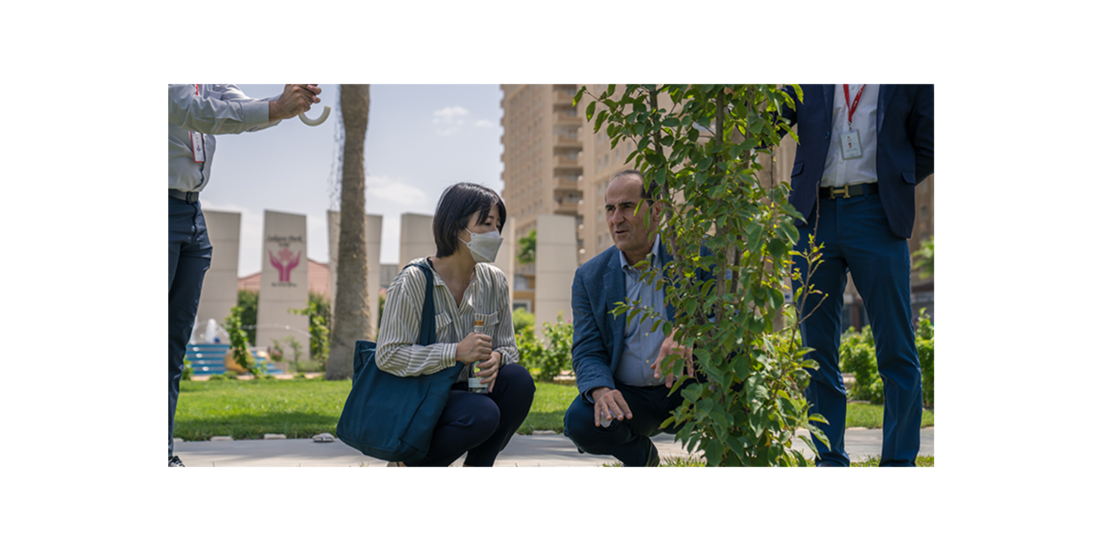 Then Mr. Sardar took Ms. Nakaji for a tour in Sakura Park which extends over an area of more than 12,000 square meters and includes a group of various trees, flowers, and water features that provide a balanced environment, in which more than 200 Sakura trees were planted in the park, so that everyone can enjoy It.