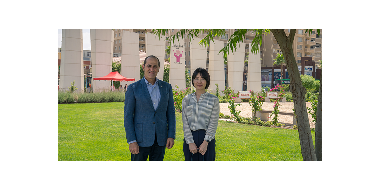 Ms. Junko Nakaji, Second Secretary, General, Press, and Cultural Affairs at the Embassy of Japan in Iraq accompanied by a delegation from the Japanese Consulate in Erbil, made a special visit to Sakura Park, where she was received by Mr. Sardar Al Bebany, the Chairman of Sardar Group and President of Toyota Iraq.